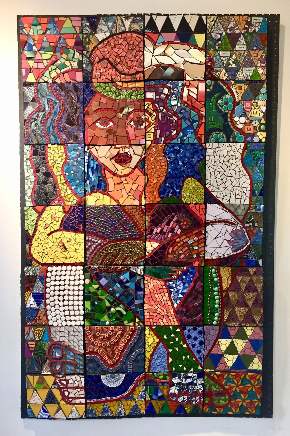 Lori said the time-consuming nature of her art actually drew her deeper into the work. She scores, nips, and arranges thousands of individual miniature tiles creating dramatic works of art portraying people, animals, plants, and landscapes.